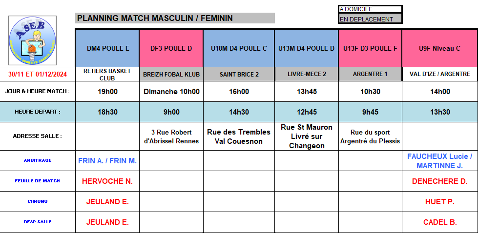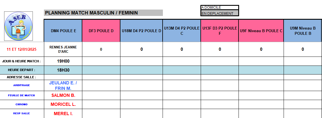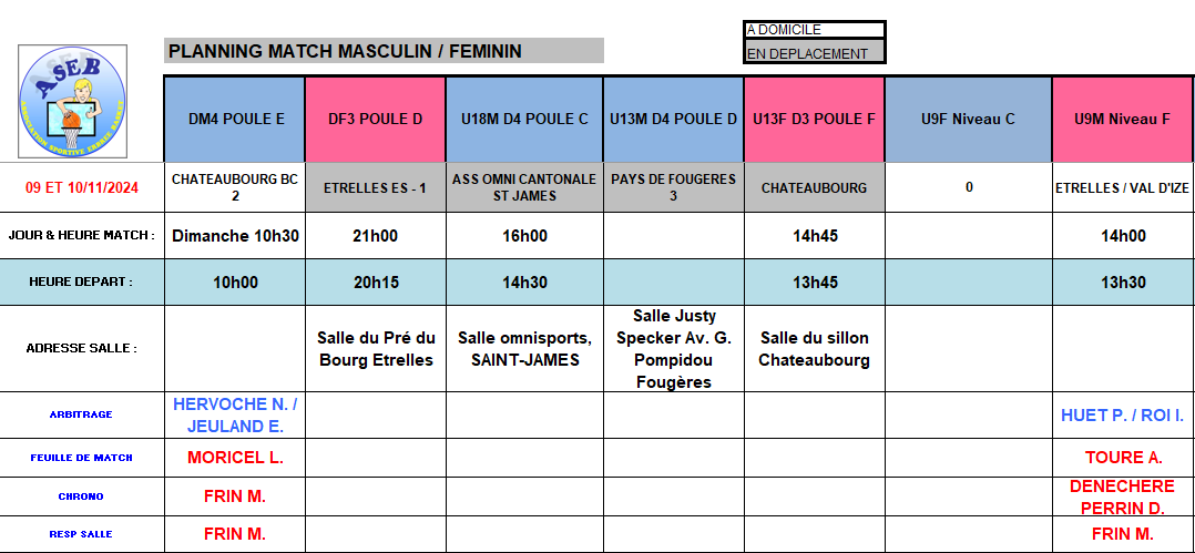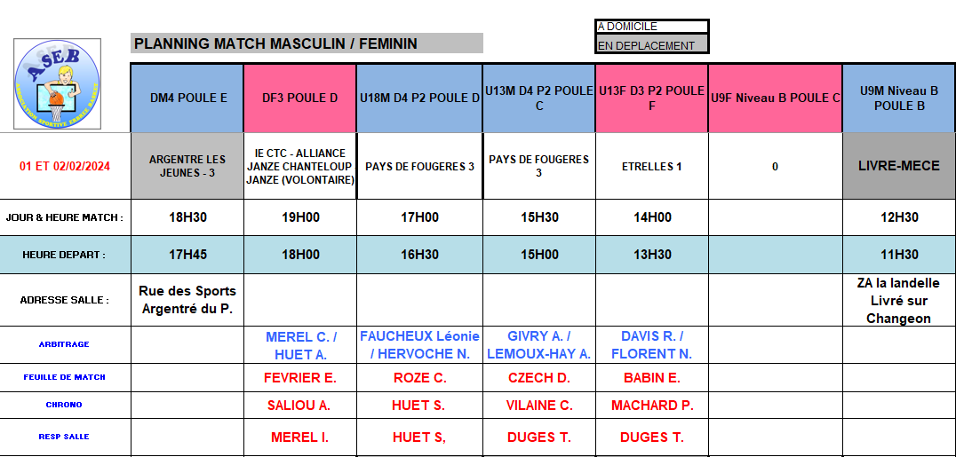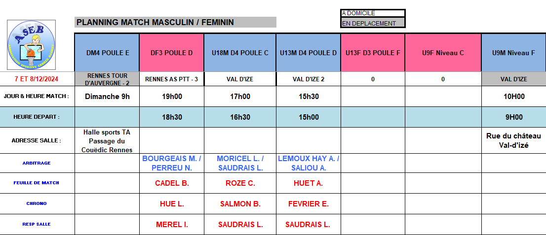 Planning des matchs et de salle
