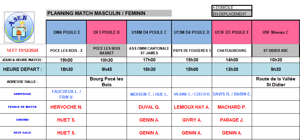 Planning du 14 et 15 Décembre 2024