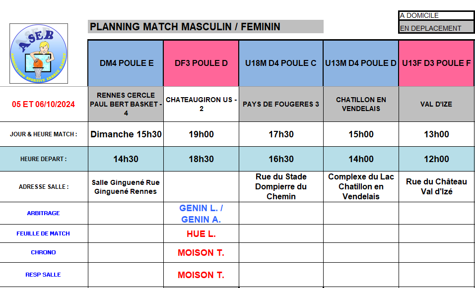 Planning des matchs et de salle