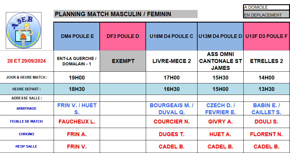 Planning du 28 Septembre 2024