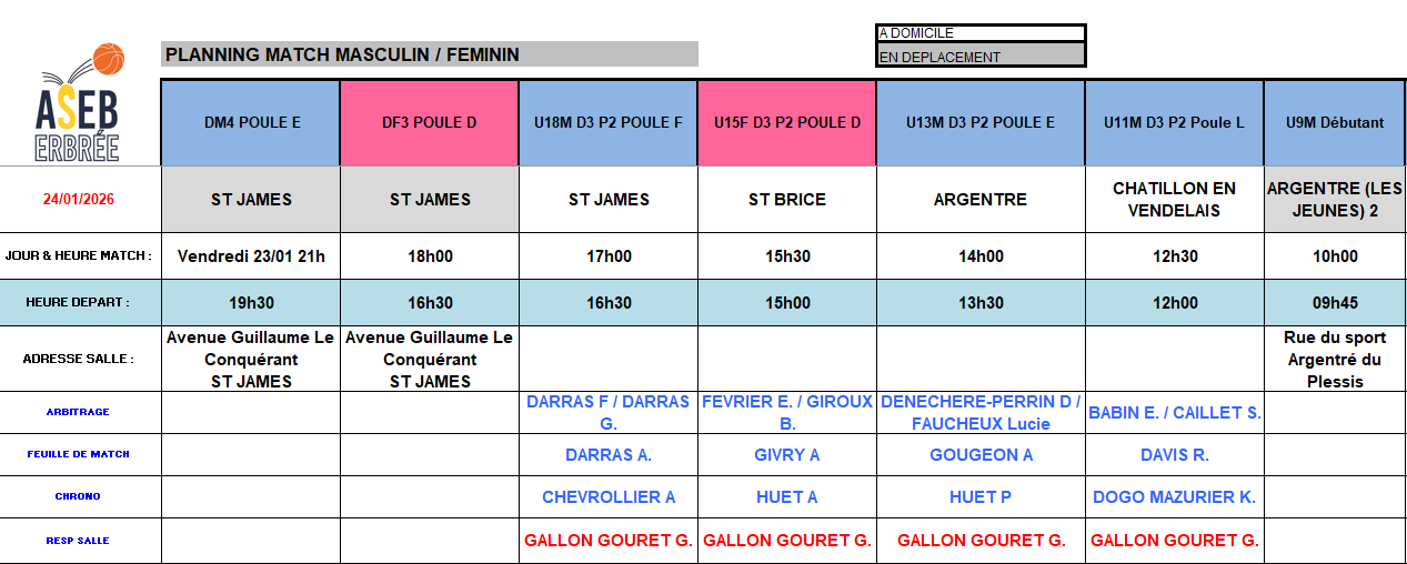 Planning du 23 et 24 Janvier 2026