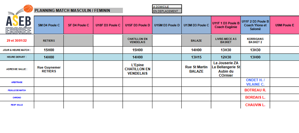 Planning du 29 et 30 Janvier 2022