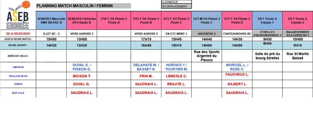 Planning des matchs et de salle