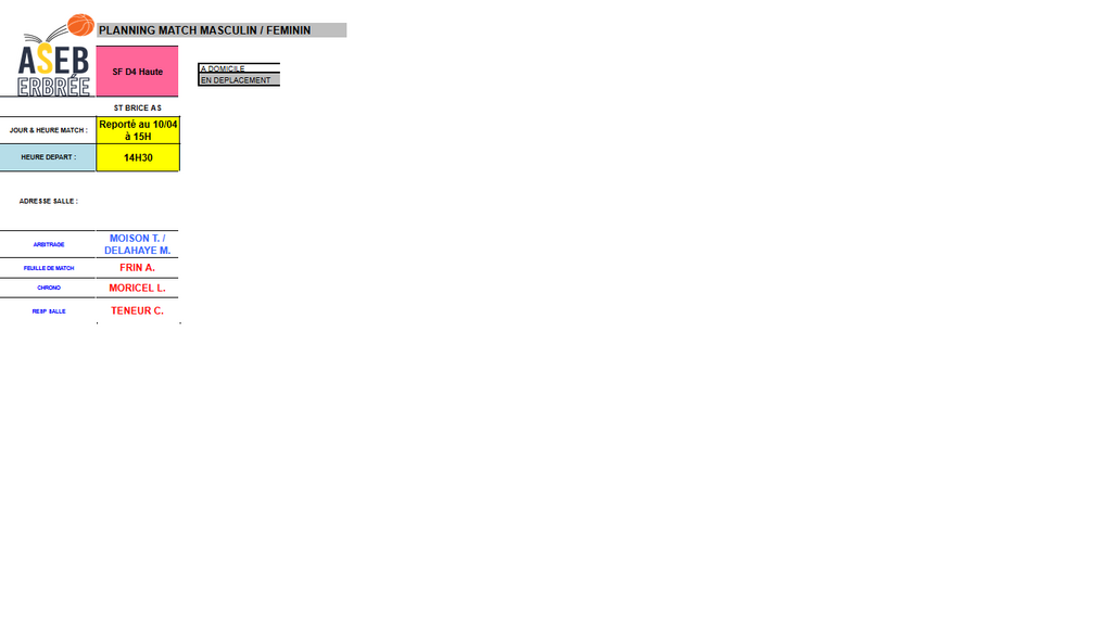 Planning des matchs et de salle