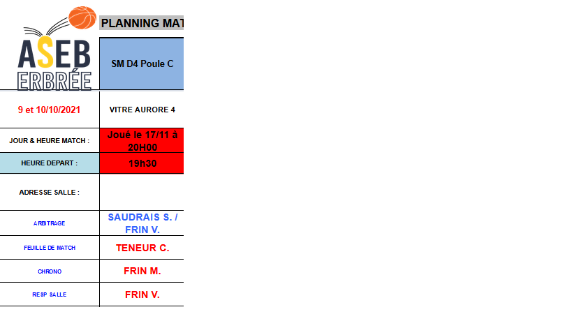 Planning des matchs et de salle