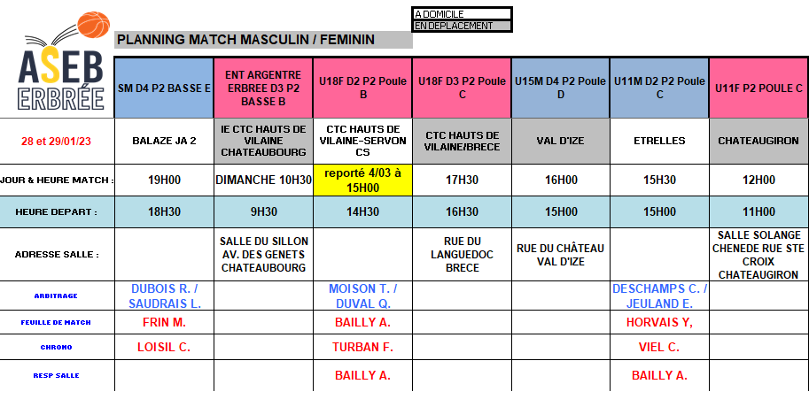 Planning du 28 et 29 Janvier 2023