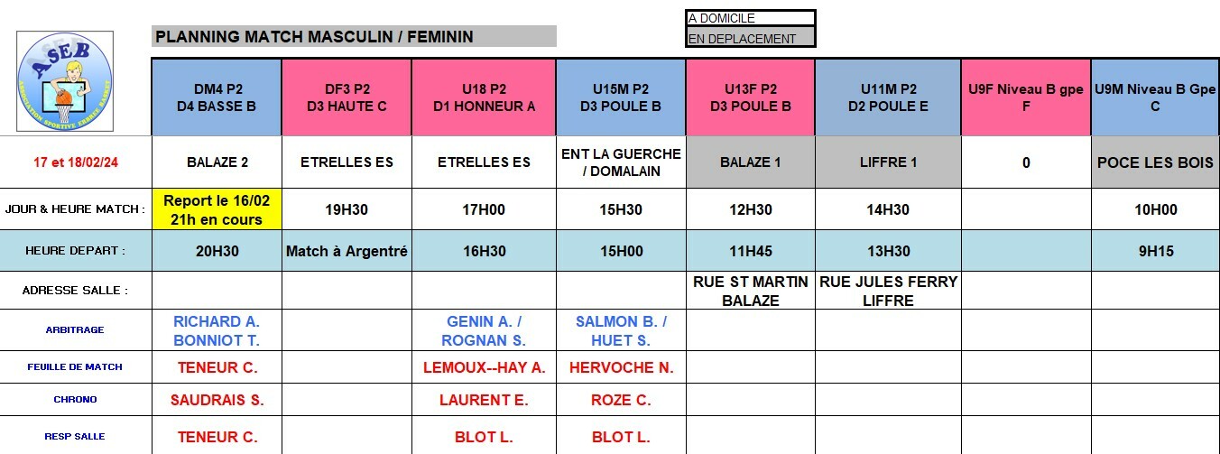 Planning du 16 et 17 Février 2024